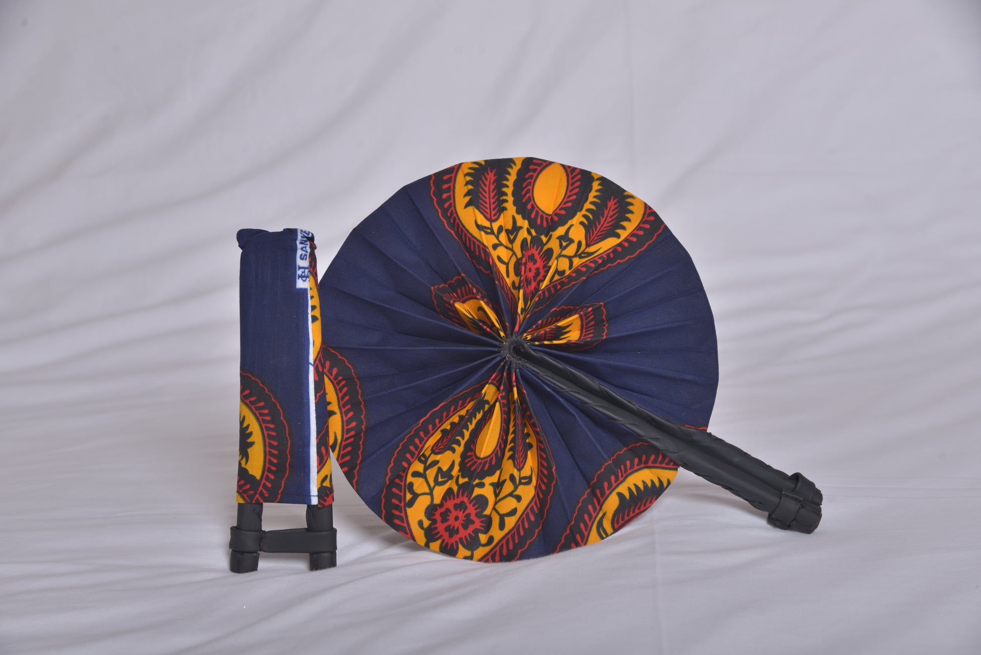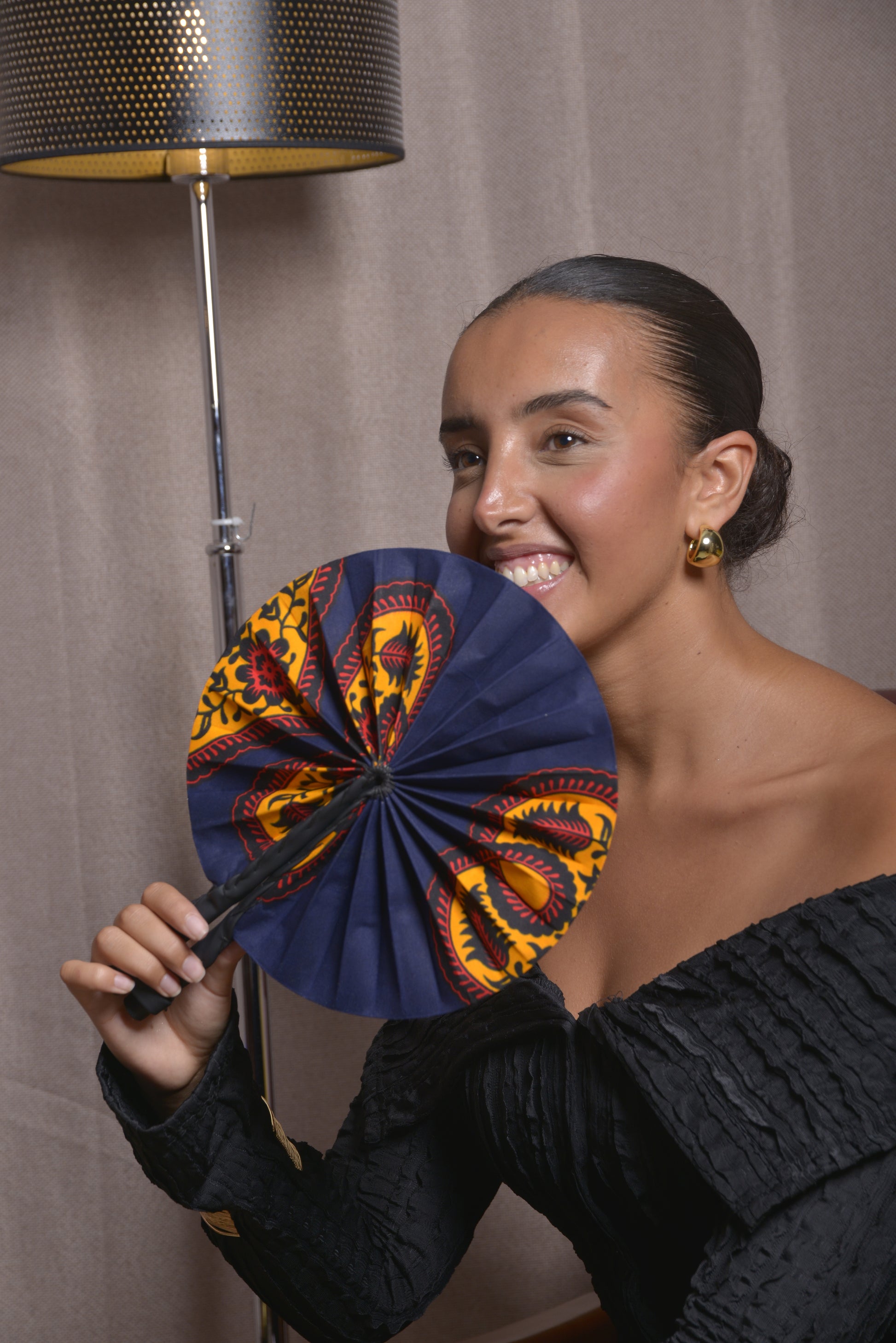 Cet éventail de la collection Tunis 1 séduit par la rencontre audacieuse du bleu marine profond, de l’orange flamboyant et du rouge intense. Réalisé à la main avec un savoir-faire artisanal soigné, il reflète à la fois l’élégance et la force des contrastes méditerranéens. Le bleu marine incarne la sérénité et la profondeur, l’orange apporte vitalité et lumière, tandis que le rouge diffuse chaleur et passion. Unique et raffiné, cet éventail exclusif est une pièce de caractère, conçue pour magnifier vos tenues d’une touche vibrante et sophistiquée.