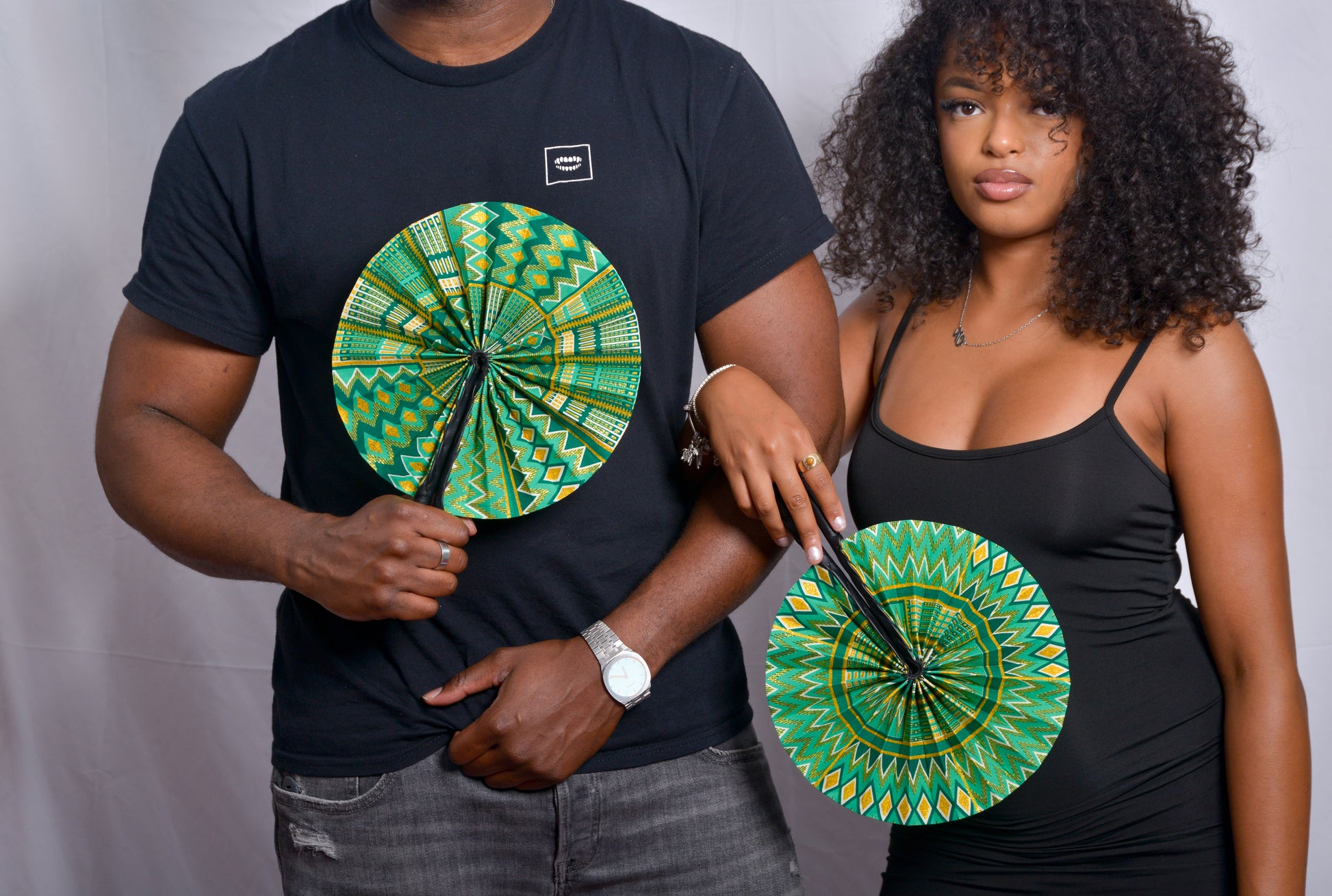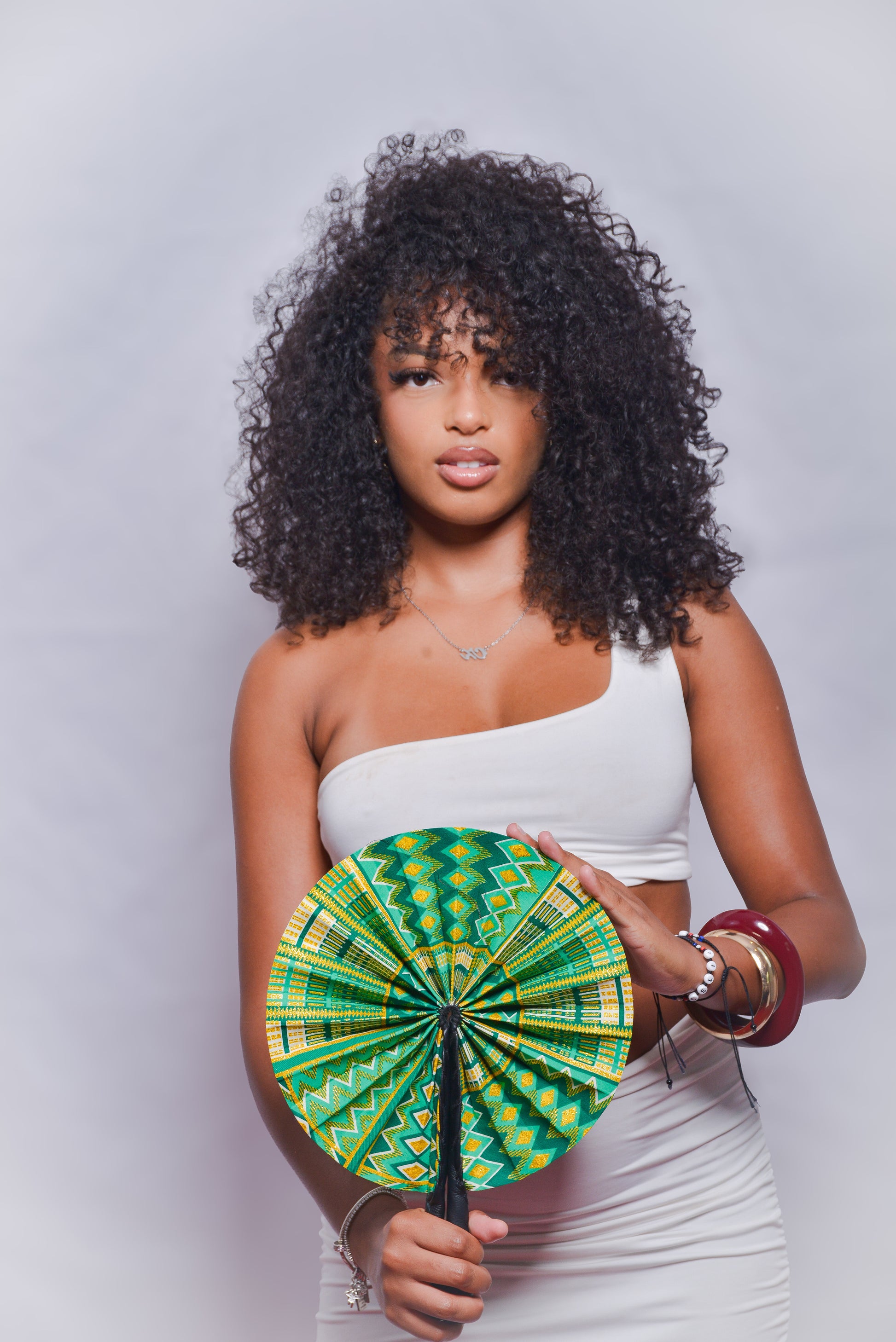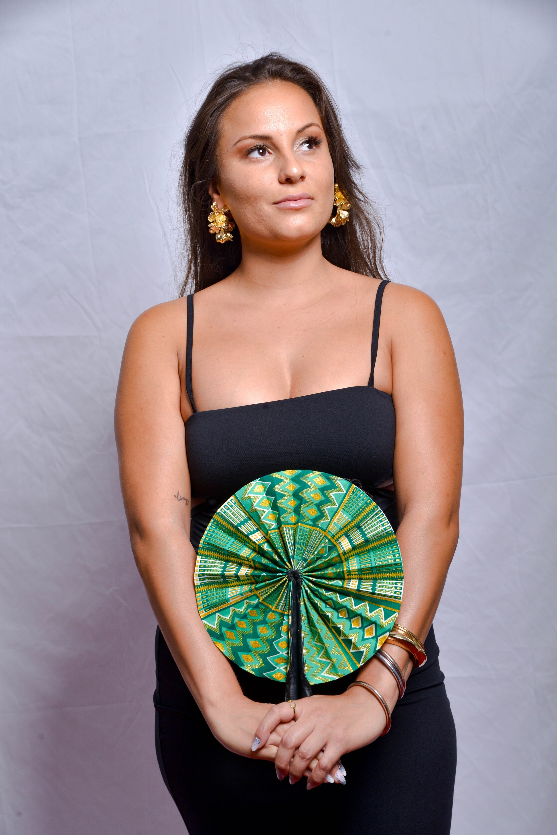 Cet éventail de la collection Tunis 3 brille par l’harmonie délicate du vert clair et de l’or scintillant. Entièrement façonné à la main, il conjugue fraîcheur et luminosité dans une création raffinée. Le vert clair symbolise le renouveau, la douceur et la vitalité, tandis que les paillettes dorées diffusent prestige, chaleur et éclat festif. Ensemble, ces nuances apportent une élégance à la fois subtile et rayonnante. Exclusif et raffiné, cet éventail est une pièce rare qui sublime chaque tenue d’une touche précieuse et sophistiquée.