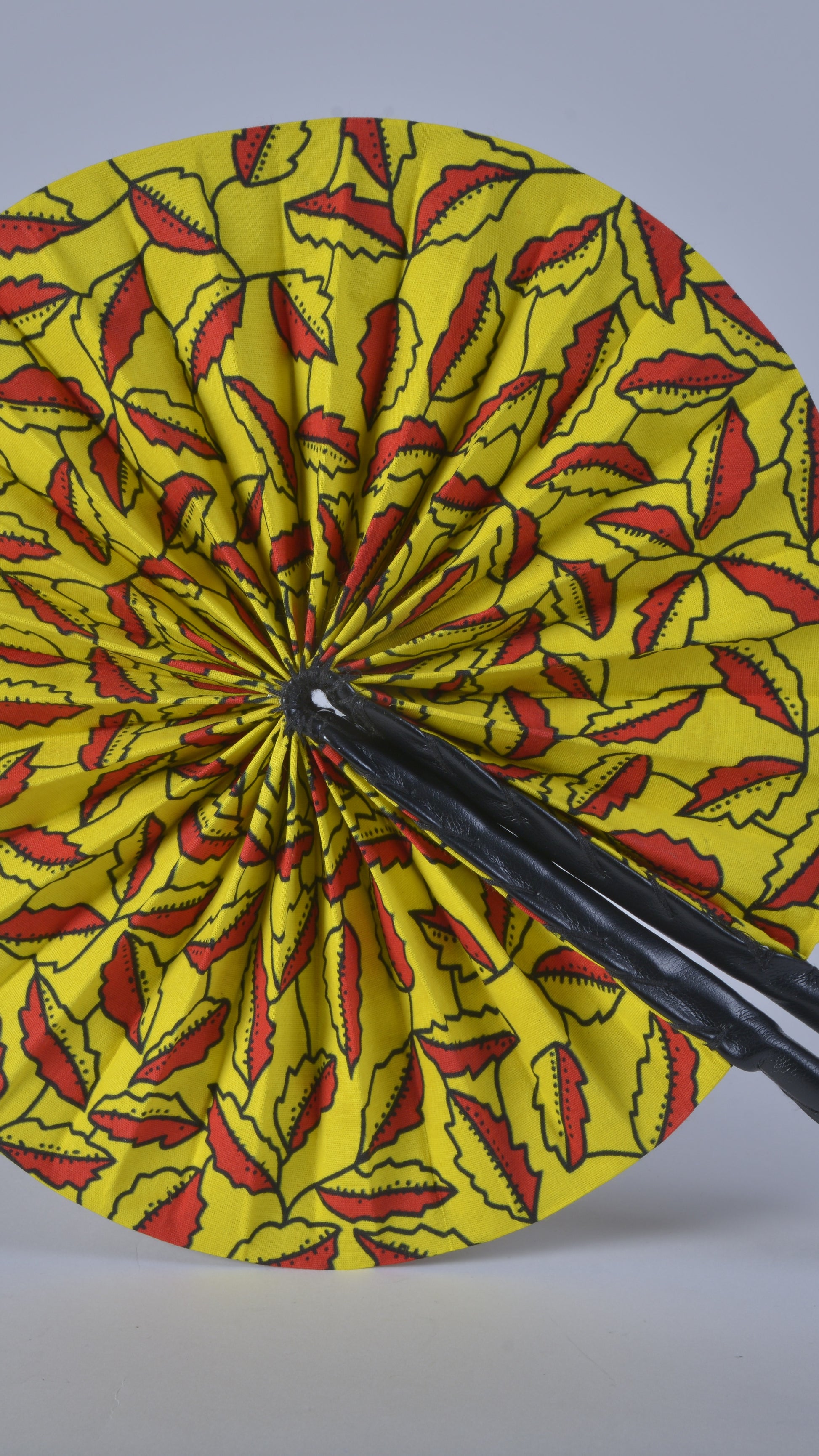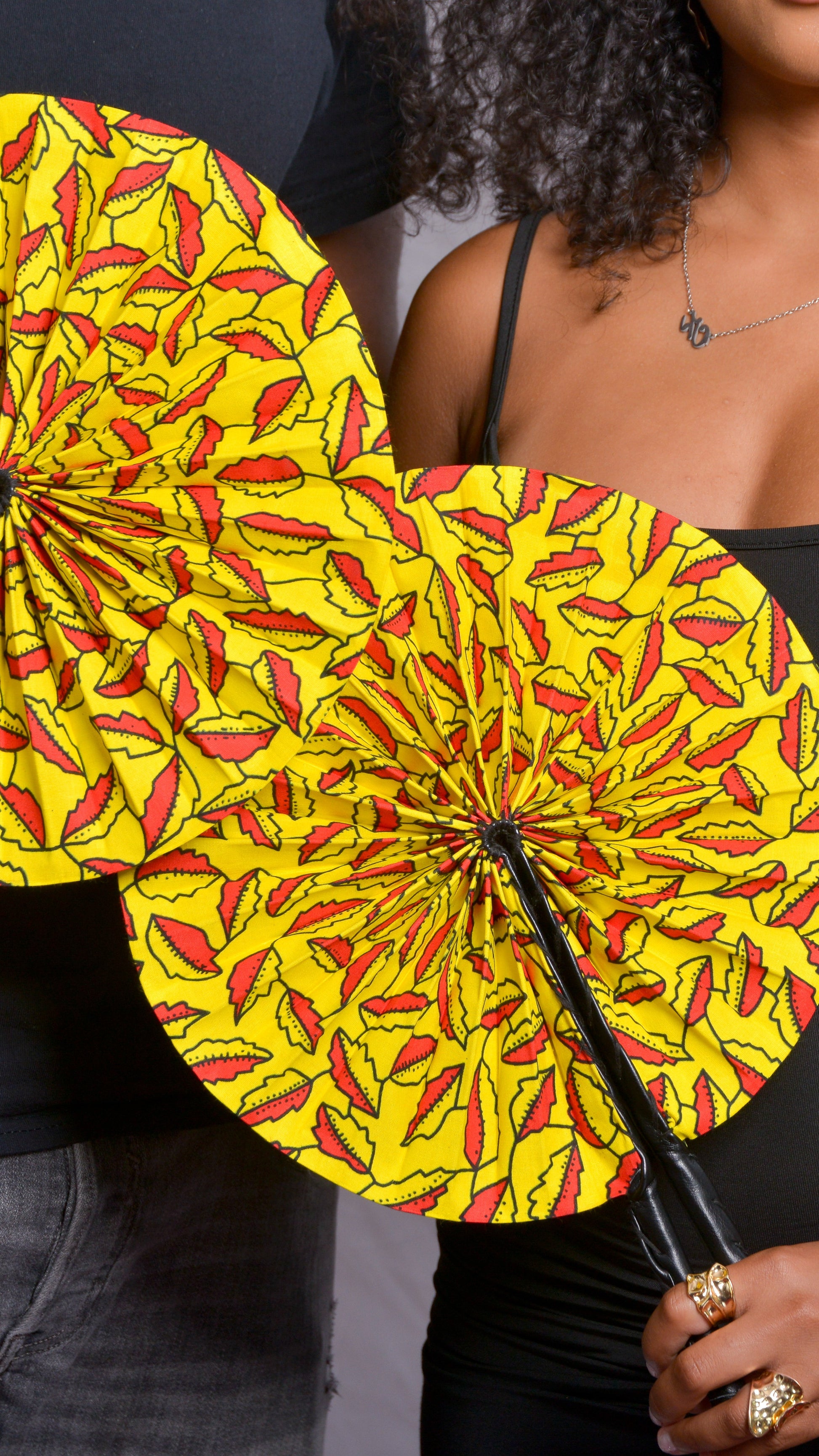 Habillé d’un jaune vif éclatant et rehaussé de touches rouge flamboyant, cet éventail rayonne de chaleur et d’optimisme. Ses motifs dynamiques évoquent la lumière du soleil filtrant à travers un feuillage tropical, invitant au voyage et à la joie. Entièrement fabriqué à la main avec un savoir-faire artisanal, il est issu d’une collection limitée et unique. Une pièce rare et précieuse, parfaite pour apporter une touche de lumière et d’originalité à vos journées.