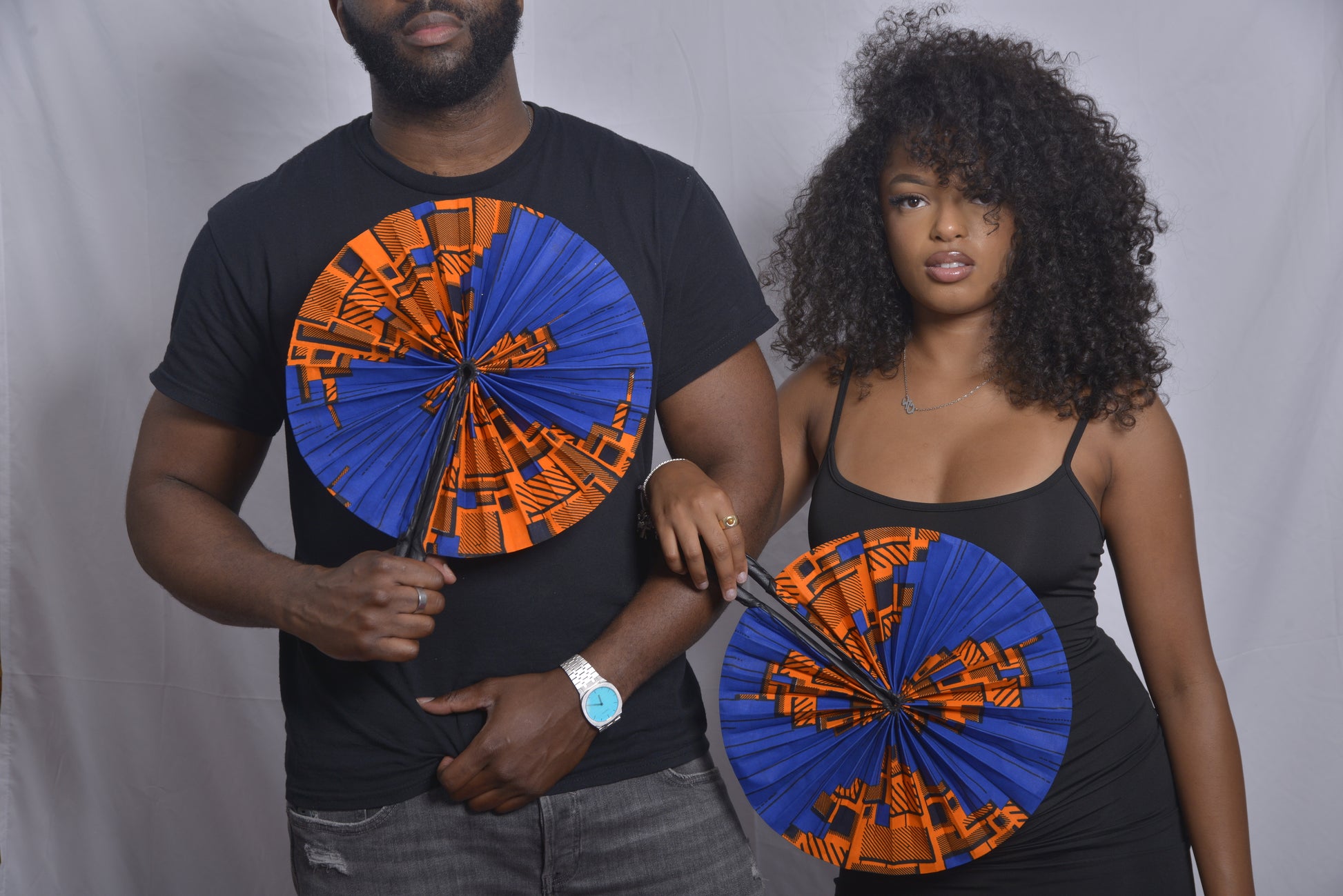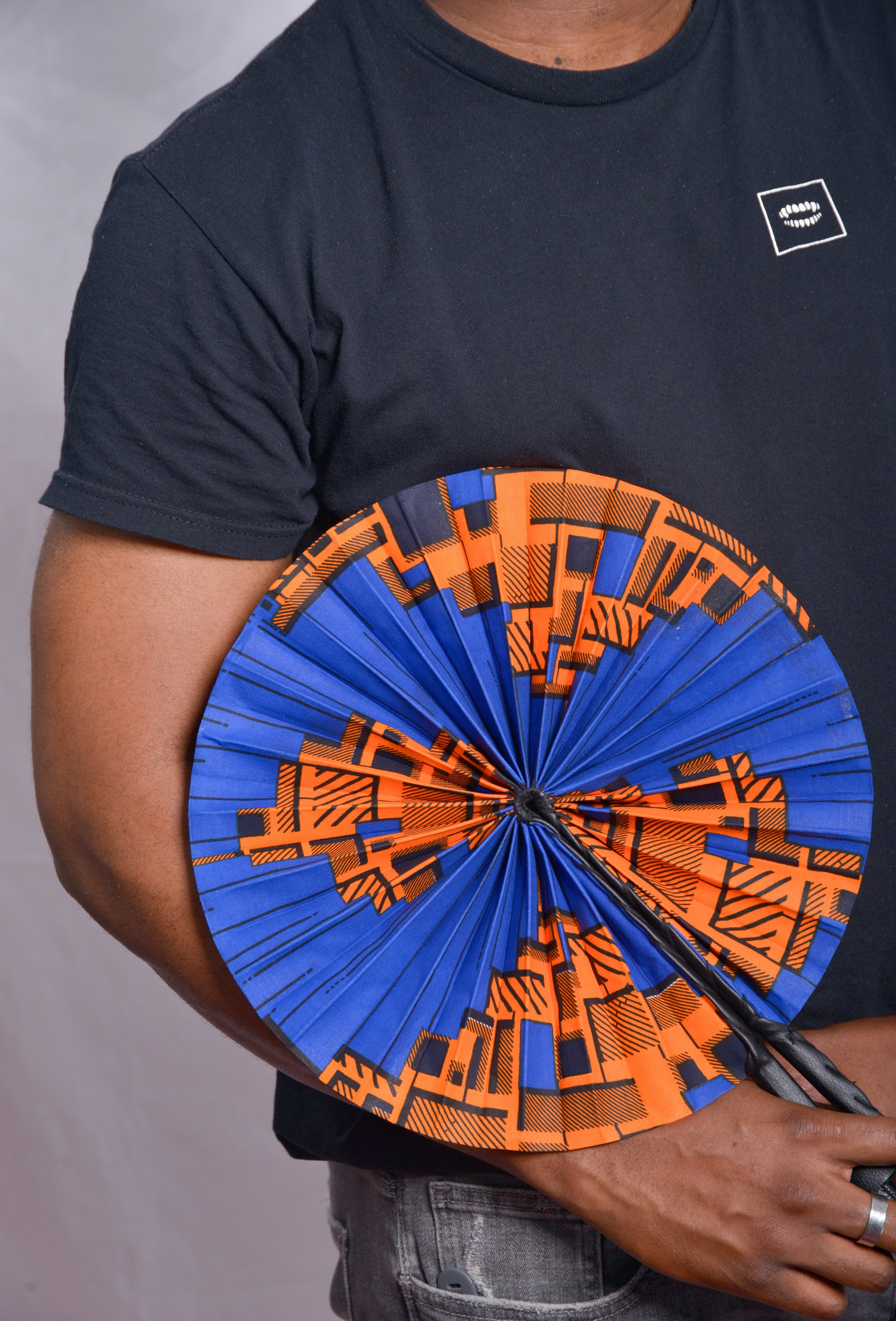 Issu de la collection Namibie, le modèle Horizons Contrastés associe la profondeur d’un bleu intense à l’éclat chaleureux de l’orange vif, sublimés par le textile wax. Bien que ce tissu ne soit pas originaire de Namibie, il évoque les paysages contrastés du pays, entre ciels clairs et terres brûlées par le soleil. Les motifs géométriques dynamiques rappellent les reliefs escarpés et l’énergie vibrante des marchés locaux, offrant un accessoire à la fois moderne, coloré et affirmé.