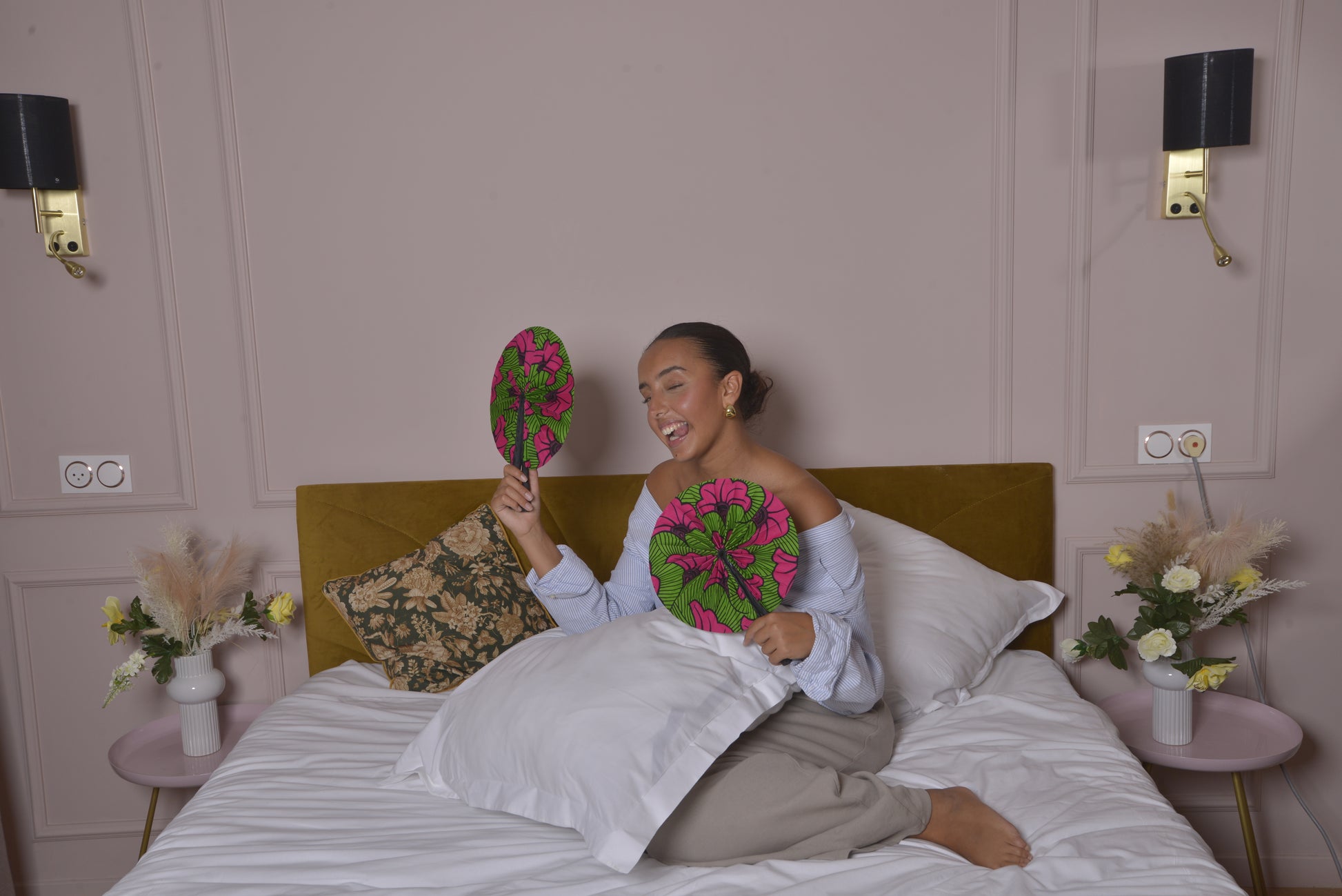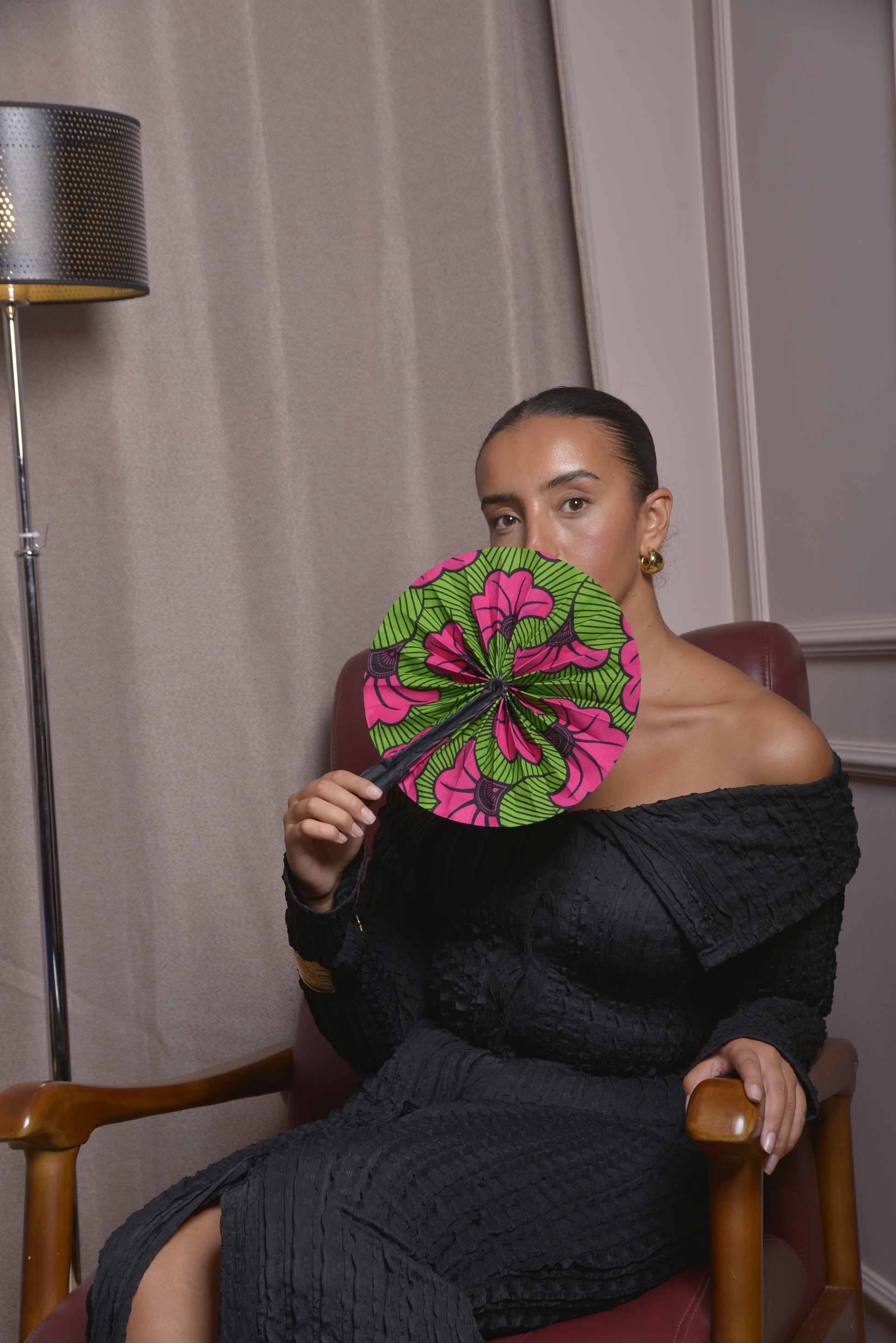 Cet éventail de la collection Libreville 1 s’illumine d’une harmonie rare entre la profondeur mystérieuse du violet et l’éclat vivifiant du vert. Entièrement réalisé à la main, il incarne un savoir-faire artisanal précieux et raffiné. Le violet, symbole de noblesse et de créativité, s’unit au vert, couleur de renouveau et d’énergie, pour donner naissance à une pièce vibrante et équilibrée. Élégant et audacieux, cet éventail exclusif sublime vos tenues d’une touche singulière, mêlant force, originalité et sophistication.