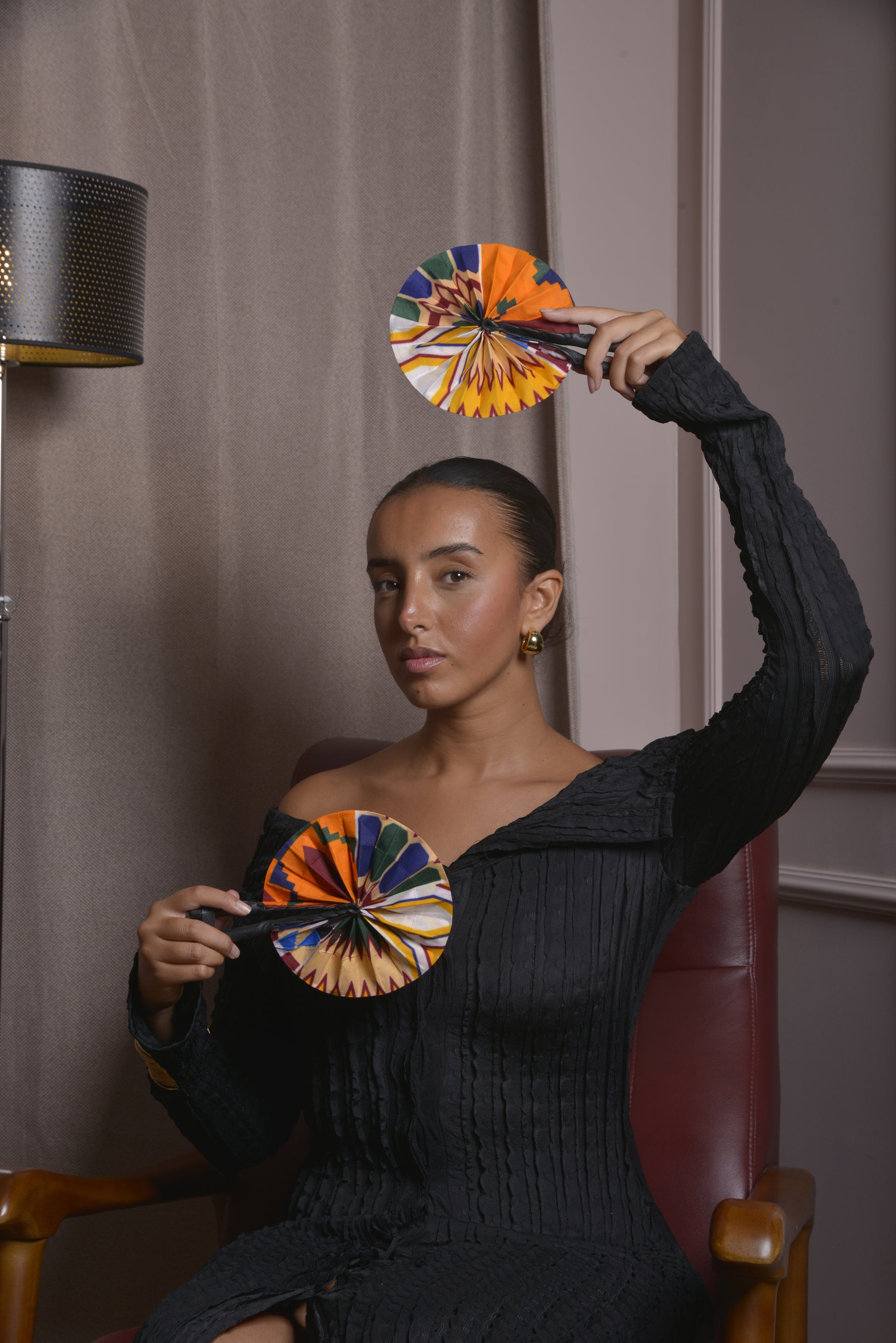 Cet éventail de la collection Dolisie 2 s’illustre par l’alliance chaleureuse de l’orange, la profondeur apaisante du bleu, la vitalité du vert et la douceur naturelle du beige. Confectionné à la main avec un savoir-faire artisanal raffiné, il incarne la richesse et l’équilibre des harmonies colorées. L’orange apporte énergie et chaleur, le bleu inspire sérénité, le vert évoque la fraîcheur et la vitalité, tandis que le beige ancre l’ensemble dans une élégance subtile et intemporelle. Unique et exclusif, cet éventail est une pièce vibrante, pensée pour rehausser vos tenues d’une touche authentique et sophistiquée.