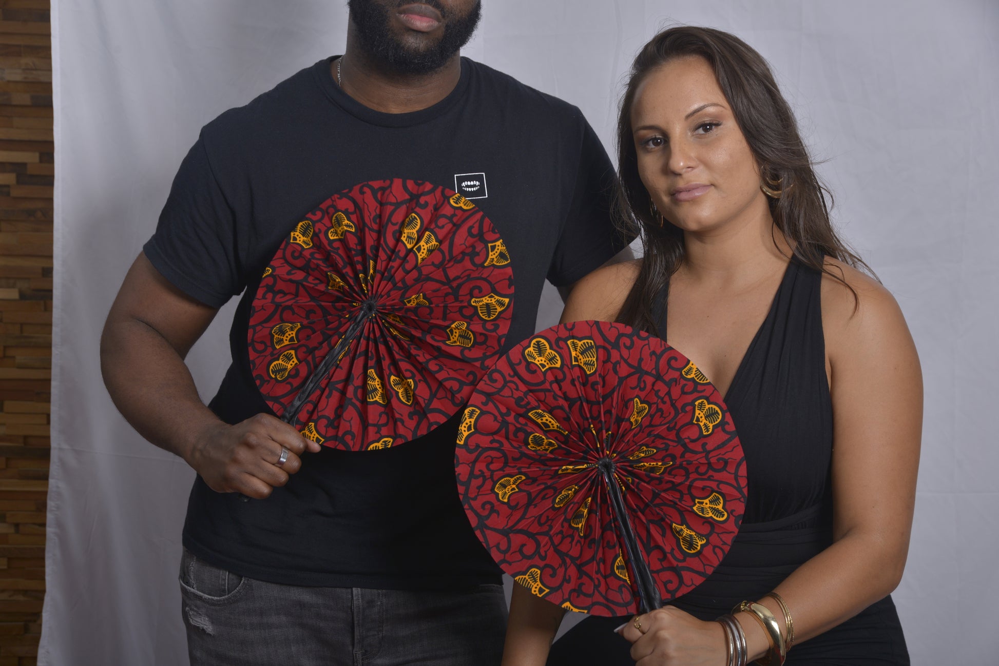 Issu de la collection Namibie, le modèle Volutes Solaires marie la profondeur d’un rouge intense au contraste du noir et à l’éclat du jaune doré, sublimés par le textile wax. Bien que ce tissu ne soit pas originaire de Namibie, il évoque la richesse de ses paysages et la chaleur de son soleil. Les volutes noires se déploient comme des arabesques délicates, ponctuées de touches dorées, créant un accessoire élégant, chaleureux et empreint de caractère.